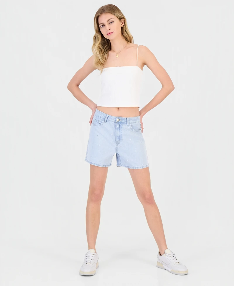 Gogo Jeans Juniors' Embroidered Hearts Denim Shorts