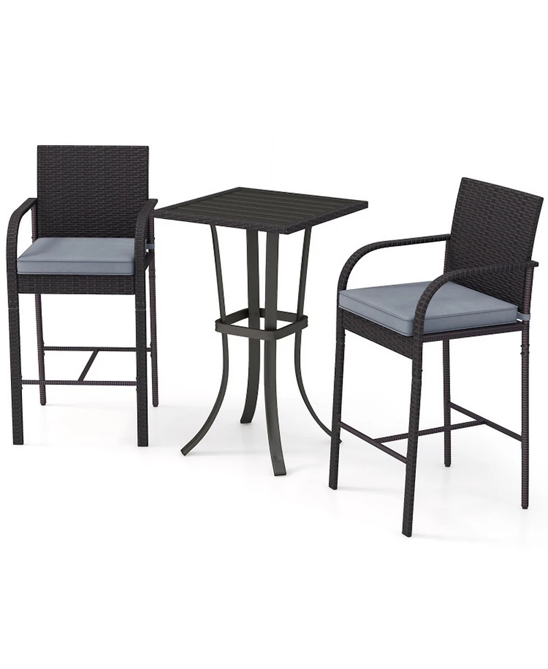 Gouun 3-Piece Wicker Bar Height Patio Set with Cushioned Stools and Square Table