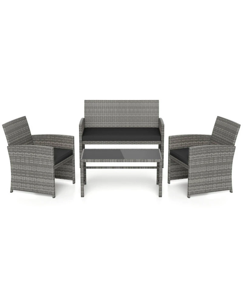 Gouun 4-Piece Wicker Patio Seating Set with Loveseat, Armchairs, and Glass Table