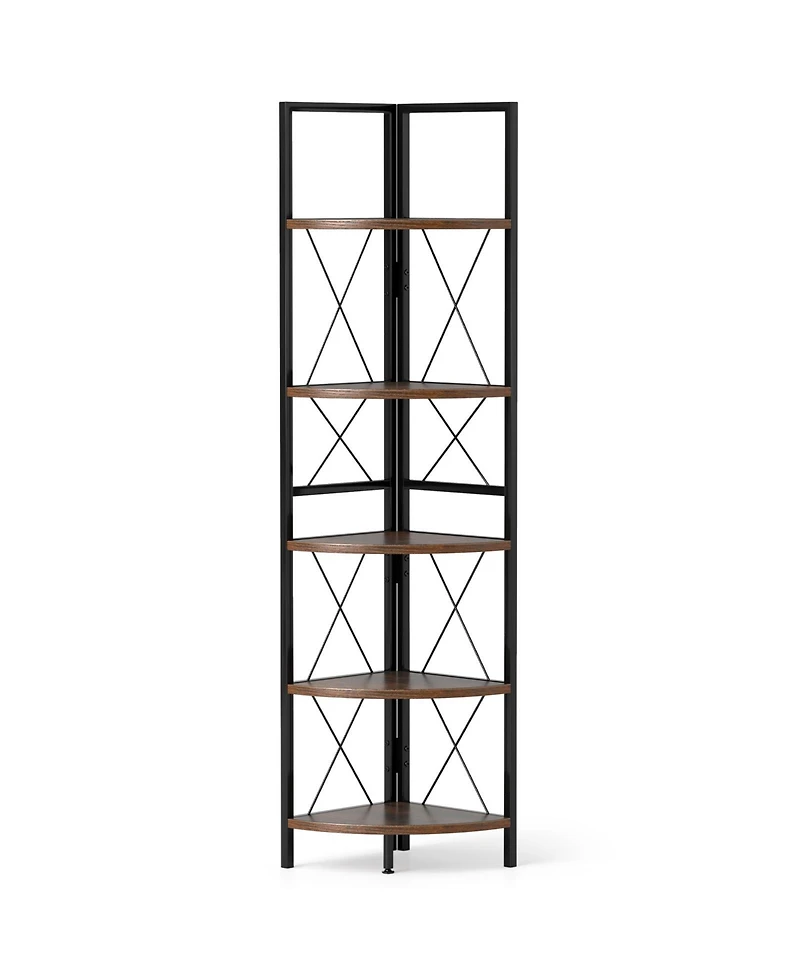 Gouun 5-Tier Freestanding Corner Shelf with Metal Frame, 14 x 14 x 63 in San Juan, PR