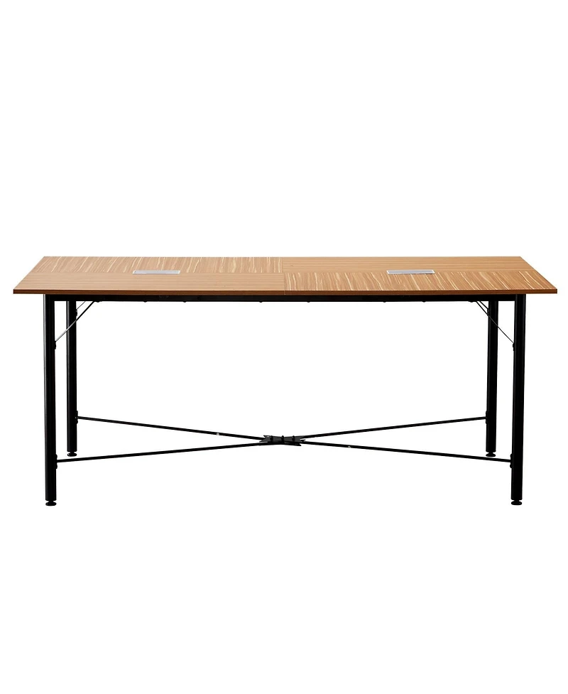 Host productive meetings around this 6 ft rectangle conference table designed to seat six to eight people. The 70.87 x 35.43 in particleboard top resists scratches, while built-in cable grommets route power and Hdmi cables neatly out of sight. Reinforced metal legs with crossbeams support up to 150 lbs without wobbling. Adjustable foot pads keep the surface level on uneven floors, and the warm brown woodgrain finish complements modern office spaces.