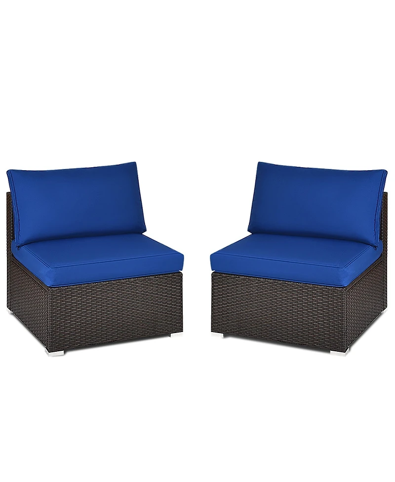 Gymax 2PCS Patio Sectional Armless Sofas Rattan Furniture Set Outdoor w/ Cushions