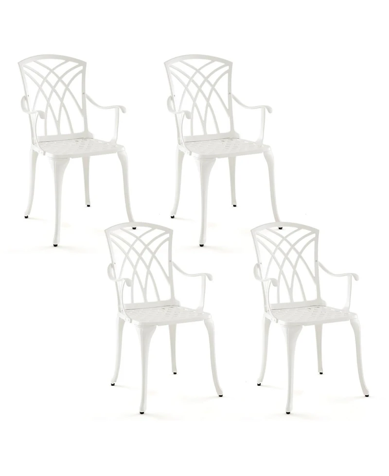 Step into style and comfort with our 4-piece cast aluminum patio dining chairs.Crafted from high-quality, rust-resistant cast aluminum and adorned with exquisite decorative patterns, these patio dining chairs promise both style and longevity. Enjoy unparalleled comfort with ergonomically designed armrests and spacious seating, while adjustable foot pads ensure stability on uneven terrains. These low-maintenance outside chairs require just a simple wipe-down to keep them looking new, making them the perfect choice for any setting, from garden soirees to peaceful porch retreats.Features:Premium cast aluminum for rustproof performanceErgonomic backrest and armrests for comfortable supportAdd a touch of elegance to your outdoor spaceSuitable for patio, deck, garden and backyardAdjustable foot pads for balance maintenanceMatch your dining table (not included) perfectlyEasy to maintain for great convenience