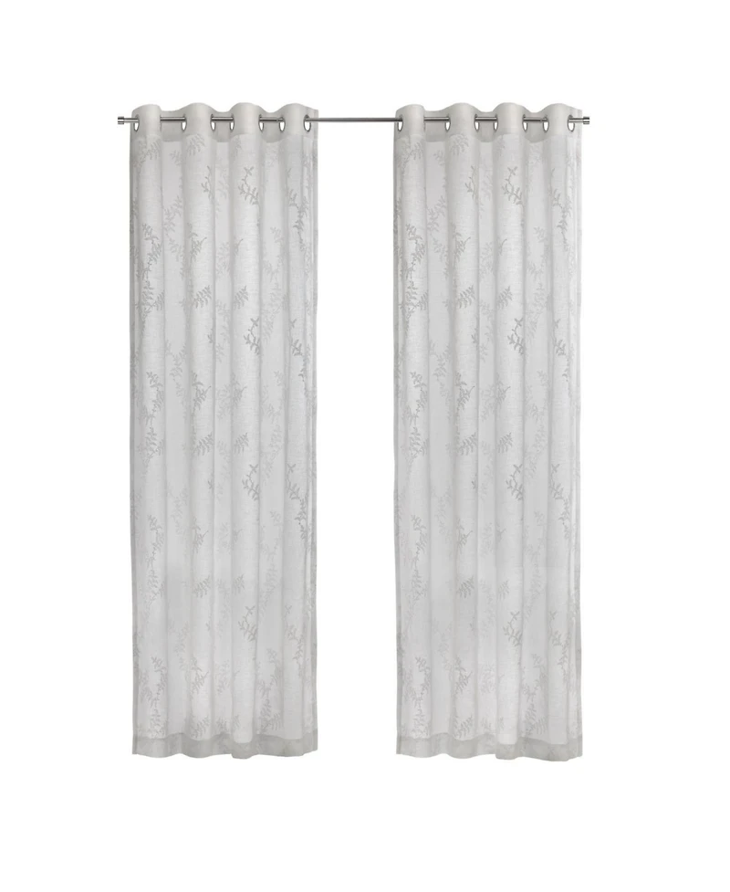Elevate your home decor with our embroidered sheer curtains, featuring a delicate tone-on-tone floral motif that brings elegance and sophistication to any room. These graceful curtains allow natural light to filter through, creating a bright, airy atmosphere while adding a stylish touch. Designed with convenient grommets, they easily slide along the rod for effortless opening and closing. Sold as a wide-width single panel, our curtains are available in various lengths to suit any window size. Made from durable, 100% polyester, they are machine washable for easy care. Add timeless beauty to your space today! Available Sizes: 52"" x 63"", 52"" x 84"", 52"" x 95"", 52"" x 108"", 112"" x 84"", and 112"" x 95"". Color: Off White.