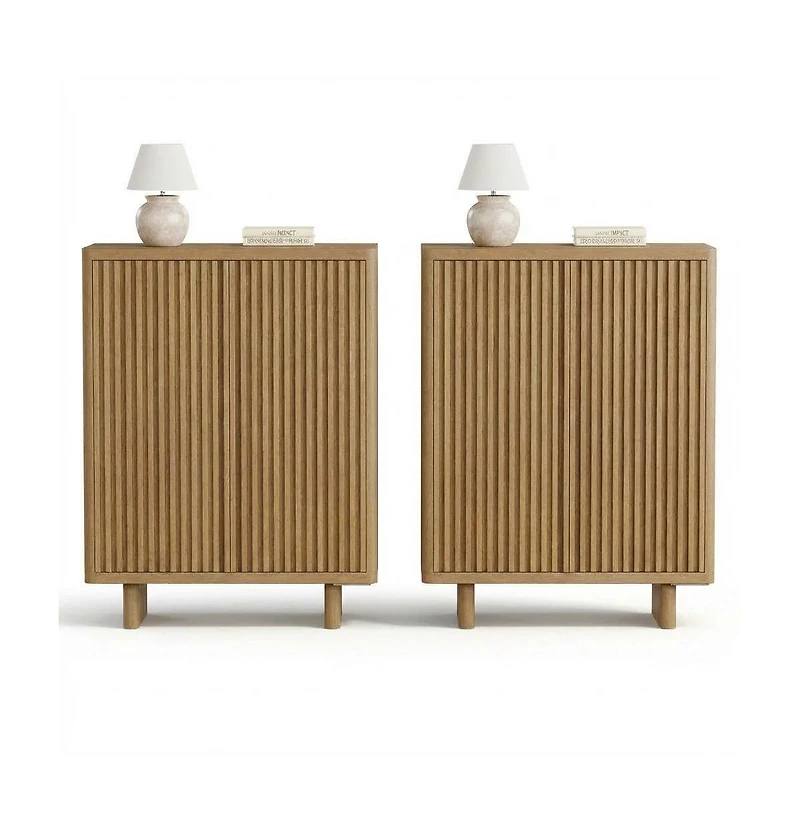 Bring order to busy spaces with this 2 piece shoe cabinet set, designed to keep everyday pairs neatly tucked away while adding a clean modern look, Each cabinet measures 31.6 x 13.7 x 41.5 in and offers five tiers with four adjustable shelves, giving you room for sandals, sneakers, flats, and boots, Fluted doors and curved edges add soft texture, while the push to open design keeps the front smooth and simple, A smart choice for entryways, hallways, bedrooms, and living rooms that need extra shoe storage without a bulky feel