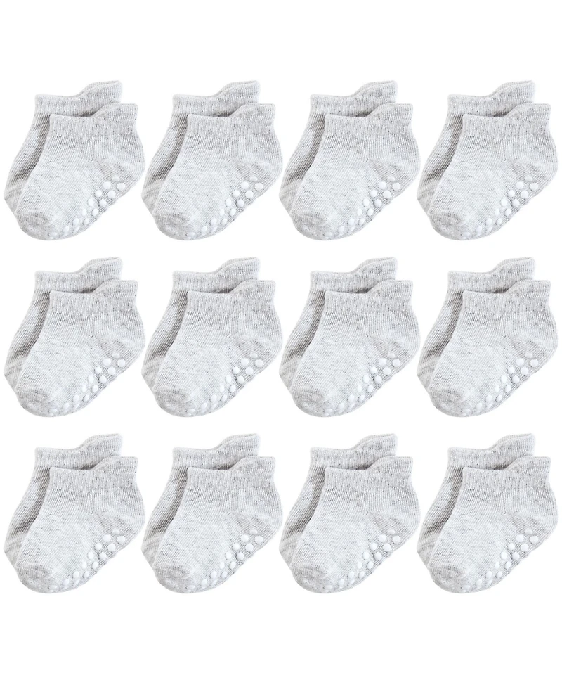 Hudson Baby socks are ideal baby socks for everyday wear with cotton-rich fabric that are soft and comfortable on your baby's tiny little feet. Our stretchable design makes for proper fit and no fuss dressing. Our non-skid grippers are perfect for little ones and toddlers walking and running, helping prevent trips and falls. Made with soft, cushy fabric, our socks are a great addition to your little one's outfit.