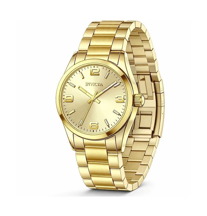 This beautiful Invicta Celestial watch contains a precise Quartz movement in addition to a gold case. Its face displays a gold, copper dial protected by a highly resistant Flame Fusion Crystal. This timepiece is completed by a gold, band and it offers water resistance of up to 30 m. Since its inception in La Chaux-de-Fonds, Switzerland in 1837, a commitment to excellence and innovation has been at the heart of every collection created by Invicta.