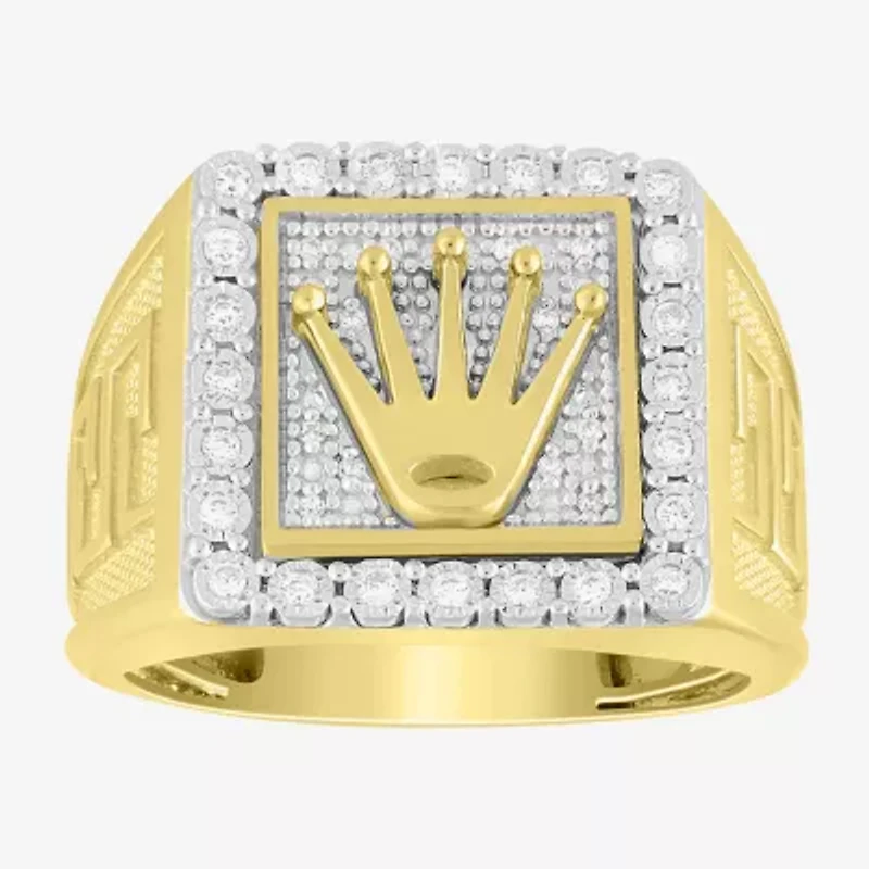 J / I3) Mens 1/ CT. T.W. Natural White Diamond 10K Gold Cocktail Ring