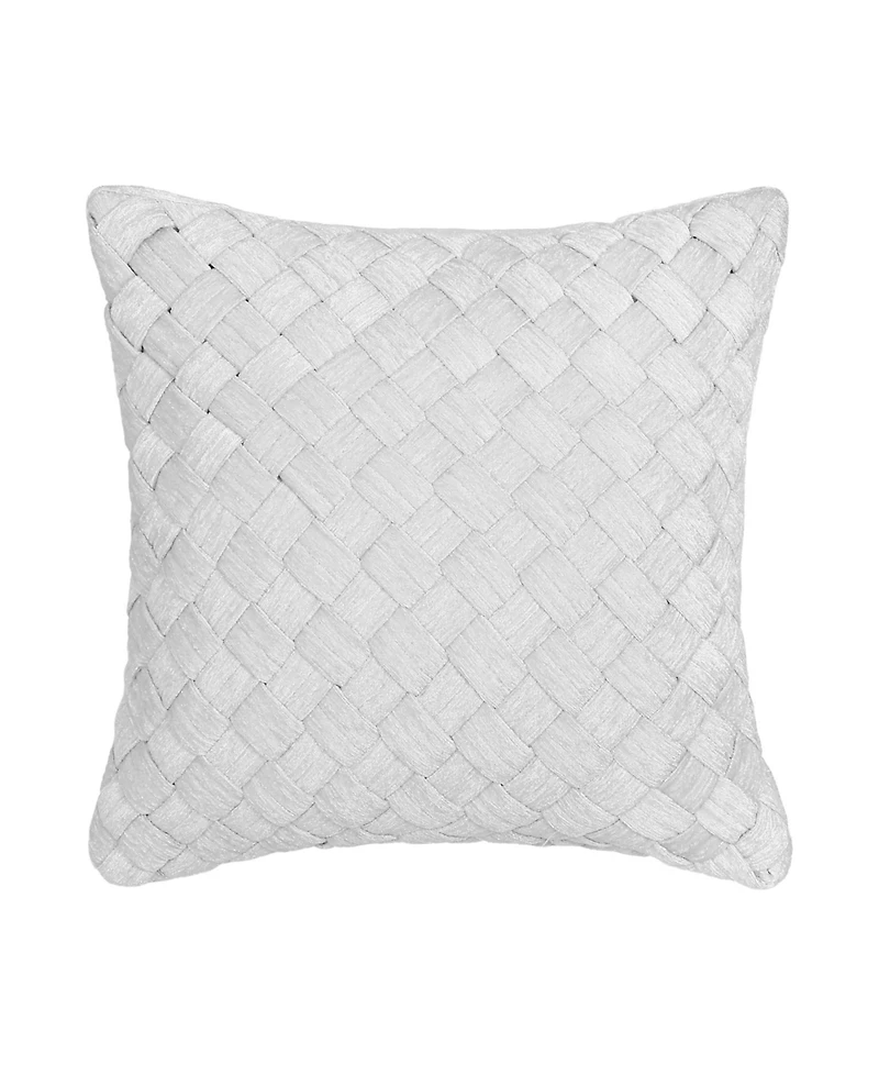 The Queensbury 18 Inch Decorative Throw Pillow features a stunning basketweave texture design in a soft ivory tone. This luxury traditional accent pillow was designed to coordinate with the Queensbury Bedding collection.