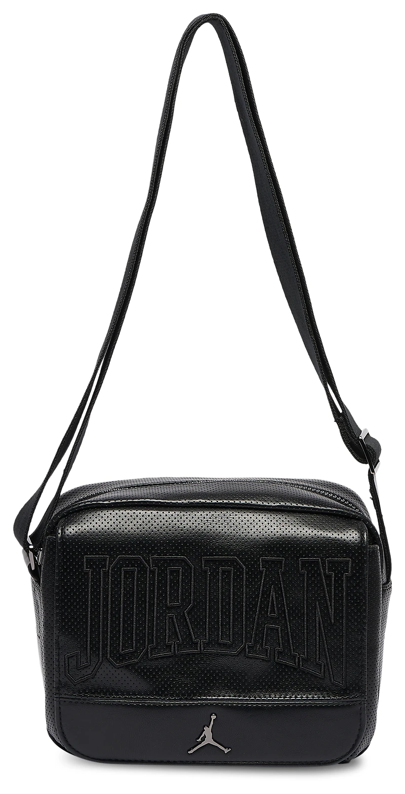Less bulk, more impact! The Jordan Monogram Messenger Bag is your go-to for effortless daily carry, wherever life takes you. Designed for ballers and fans who stay on the move, this messenger features a main compartment with a secure zip closure to keep your essentials safe, organized, and protected. The durable perforated faux leather delivers a premium look and lasting strength, while an embroidered front logo adds unmistakable Jordan style. A large front pocket with a foldover flap and hidden magnetic closures offers quick, easy access to the items you need on the move. Compact, stylish, and functional, the Jordan Monogram Messenger Bag is ready for whatever your day throws your way. Jordan Monogram Messenger Bag features: