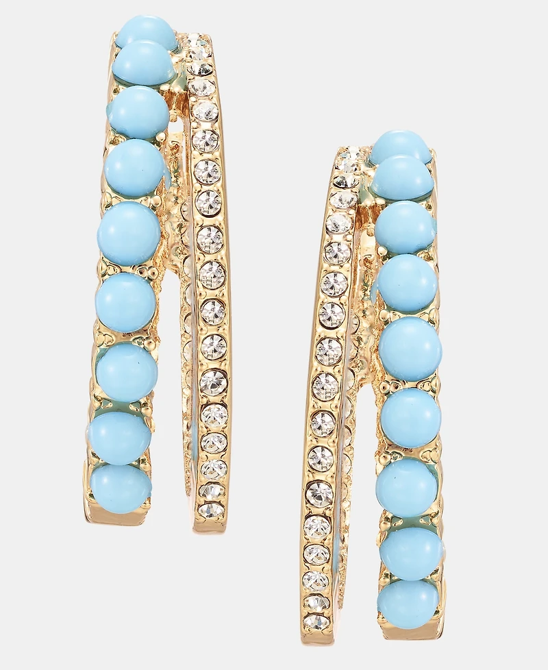 Pops of turquoise hues and sparkle decorate these unique split hoop earrings from Karl Lagerfeld Paris.