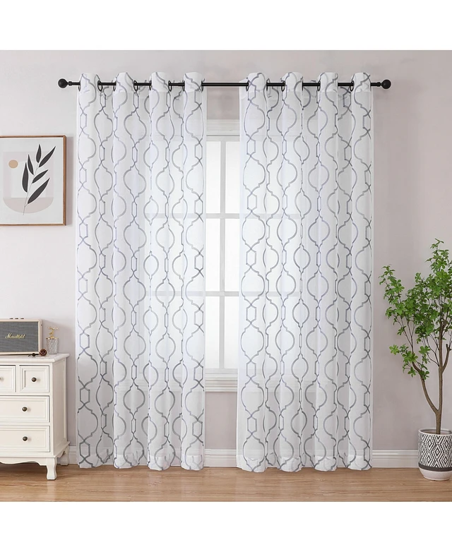 Kate Aurora Transcendence 1 Piece Grommet Top Embroidered Sheer Trellis Clover Window Curtain Panel - Silver in San Juan, PR