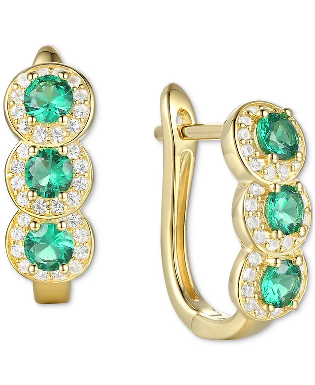 Lab-Created Emerald (3/8 ct. t.w.) & Lab-Created White Sapphire (1/6 ct. t.w.) Leverback Drop Earrings in 14k Gold-Plated Sterling Silver