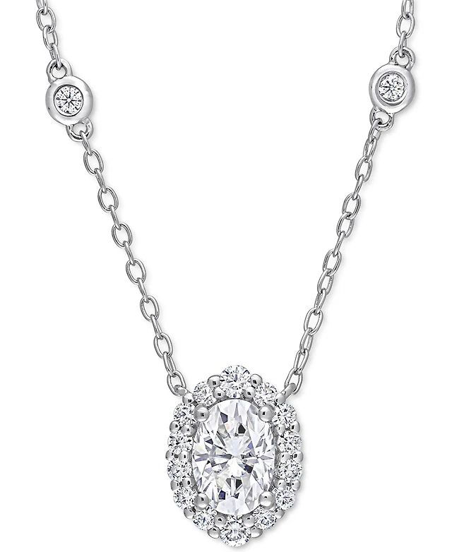 Lab-Grown Moissanite Oval Halo 18" Pendant Necklace (1-1/2 ct. t.w.) in Sterling Silver