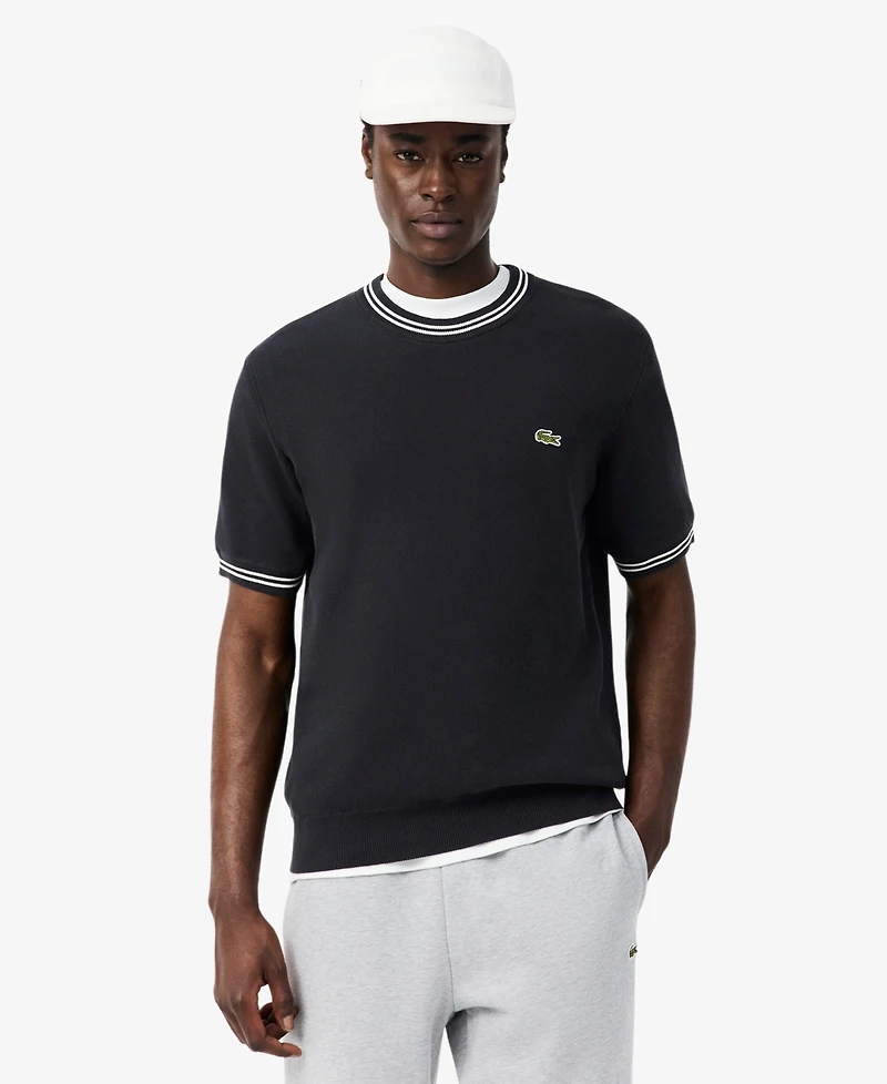 Refresh your summer style with this Lacoste knit, crafted in a classic fit with a crewneck for timeless elegance. Subtle stripes at the collar and cuffs lend a polished and effortless finish.