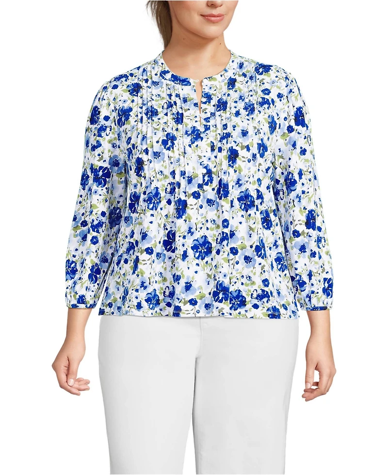 Lands' End Plus Lightweight Jersey Button Pintuck Top