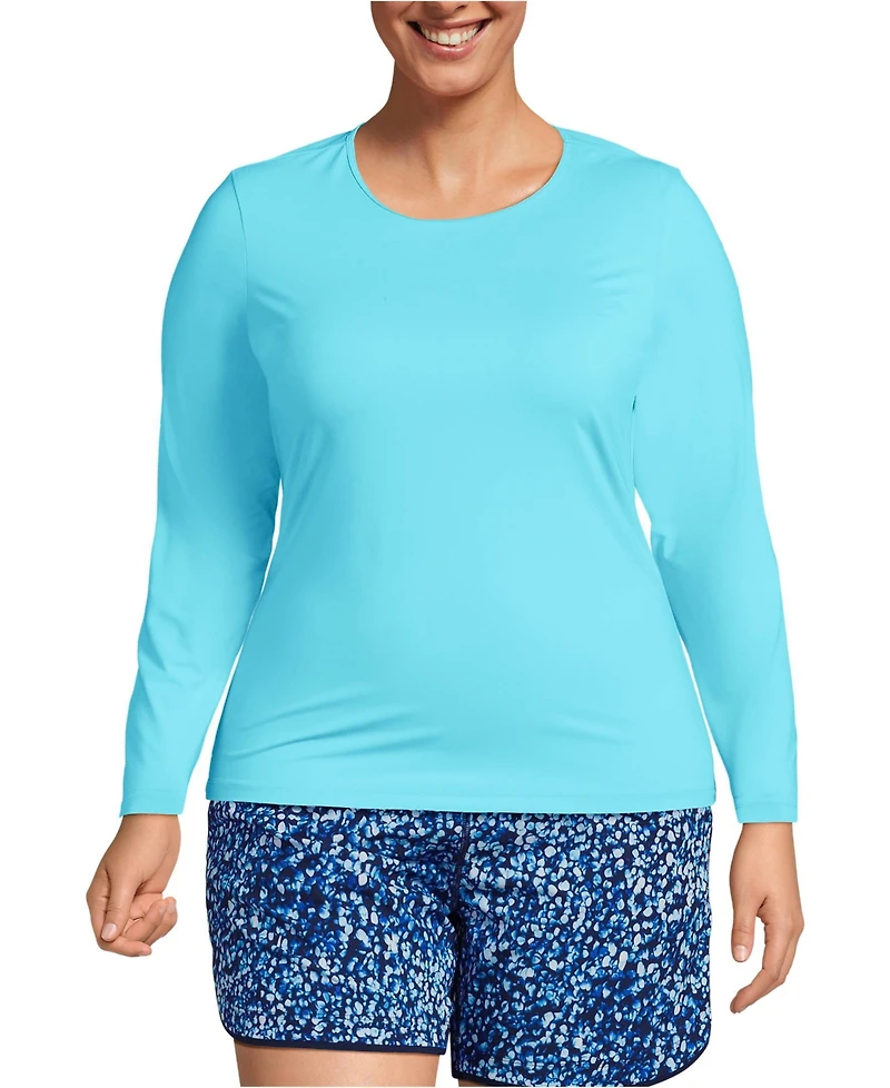At Lands End we believe every body is a swimsuit body and everybody should feel confident in their swimwear. Our Women Crew Neck Long Sleeve Rash Guard Modest Swim Tee is no exception. Lightweight and soft this tee is made with Lycra Xtra Life spandex. It is specially designed to keep its shape in and out of the water and hold up all summer long. It offers Upf sun protection wherever it has you covered. We promise you re going to love this fun and flattering crewneck long sleeve modest swim tee..
