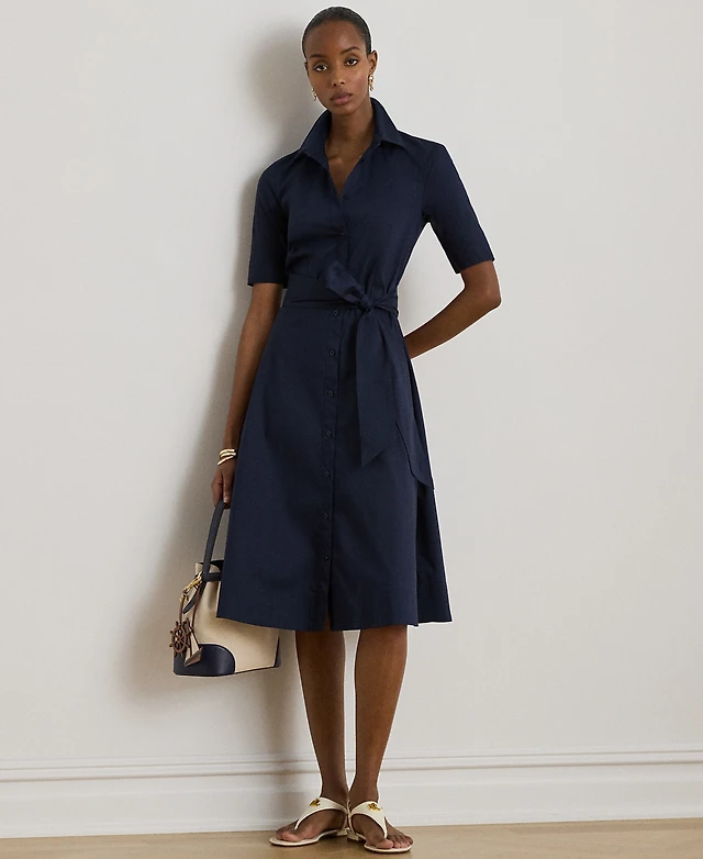 Lauren Ralph Lauren Women's Petite Belted Point Collar Shirtdress