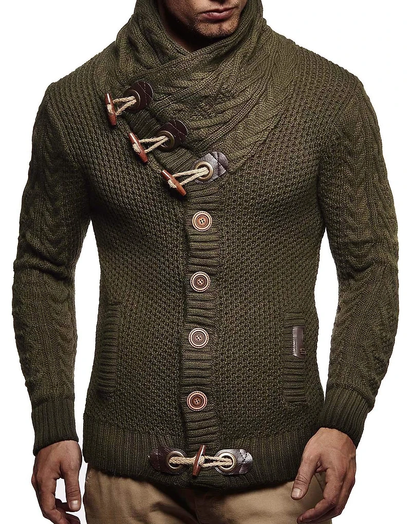 Leif Nelson Men's Knitted Turtleneck Jacket - Winter Cardigan Sweaters for Men