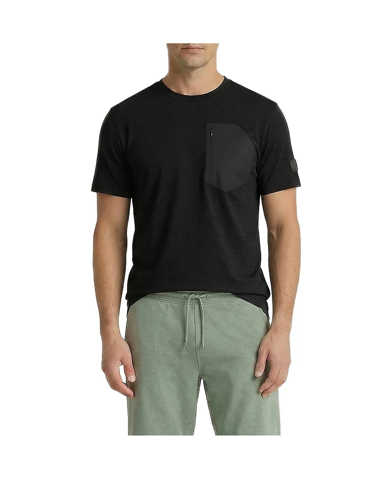 This short-sleeve tee combines performance fabric and practical design. The stretch jersey (90/10) wicks moisture and moves with you, while one zip pocket secures your phone, keys, or cards. Versatile for workouts, travel, and casual wear.