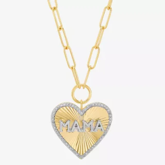 Limited Quantities! Mama" Womens 1/10 CT. T.W. Natural White Diamond 14K Gold Over Silver Heart 18 Inch Pendant Necklace