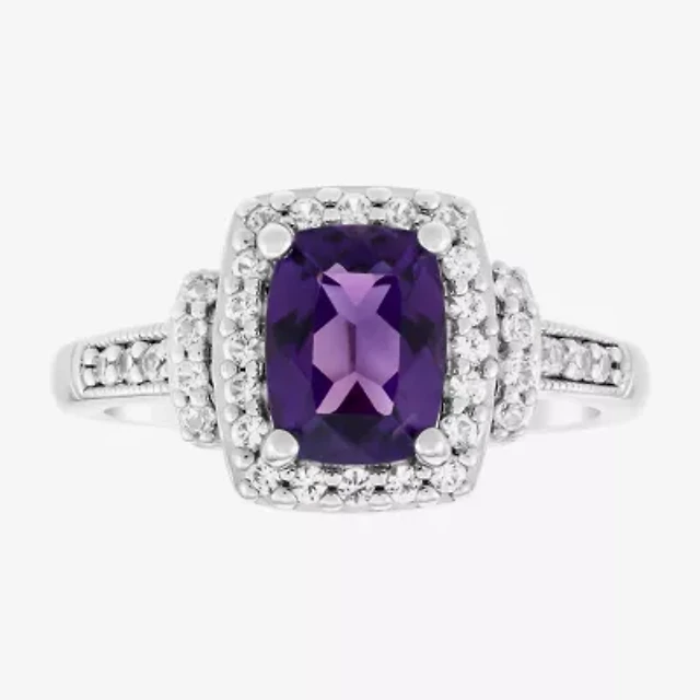 Limited Quantities! Womens Genuine Purple Amethyst Sterling Silver Cushion Halo Side Stone Cocktail Ring