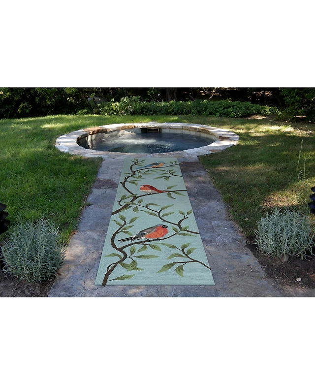 Liora Manne' Ravella 2270 Birds On Branches Blue 2' x 8' Indoor/Outdoor Runner Area Rug