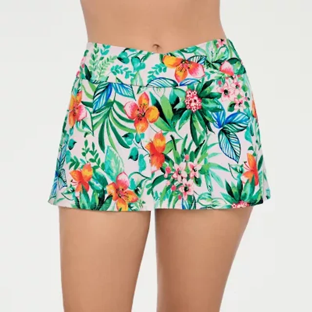 Liz Claiborne Womens Comfort Waistband Floral Swim Skirt