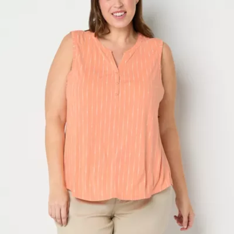 Liz Claiborne Womens Plus Split Crew Neck Sleeveless Tank Top