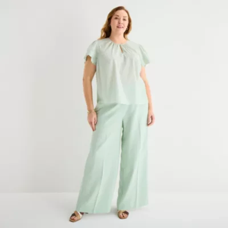 Liz Claiborne Womens Plus Wide Leg Trouser