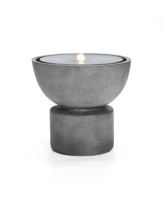 LuxenHome Gray Resin Column and Bowl Sculpture Outdoor Fountain with Lights