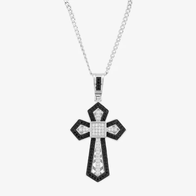 Made in Italy Mens Black Spinel Sterling Silver Cross 22 Inch Pendant Necklace