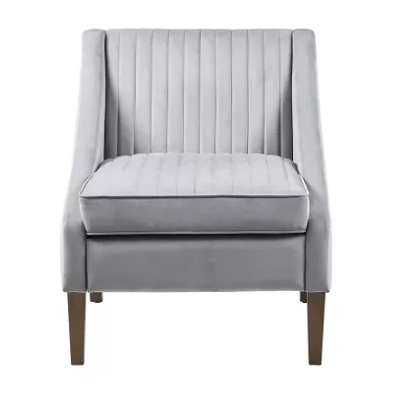 The Madison Park Duncan accent chair introduces a modern, yet transitional update to your living room or bedroom. This armless accent chair features a channel back and seat upholstered in plush polyester velvet that is soft and durable.