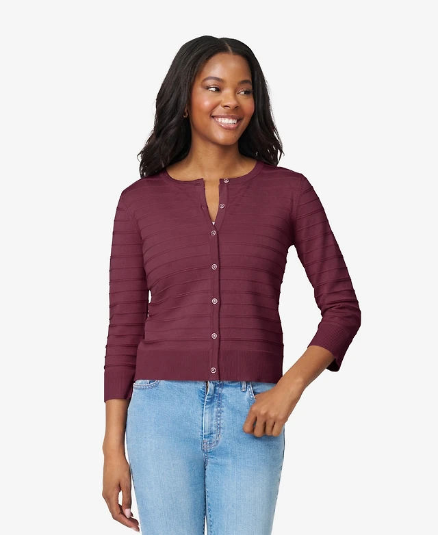 Melissa Paige Women's Ottoman-Rib 3/4-Sleeve Crewneck Cardigan