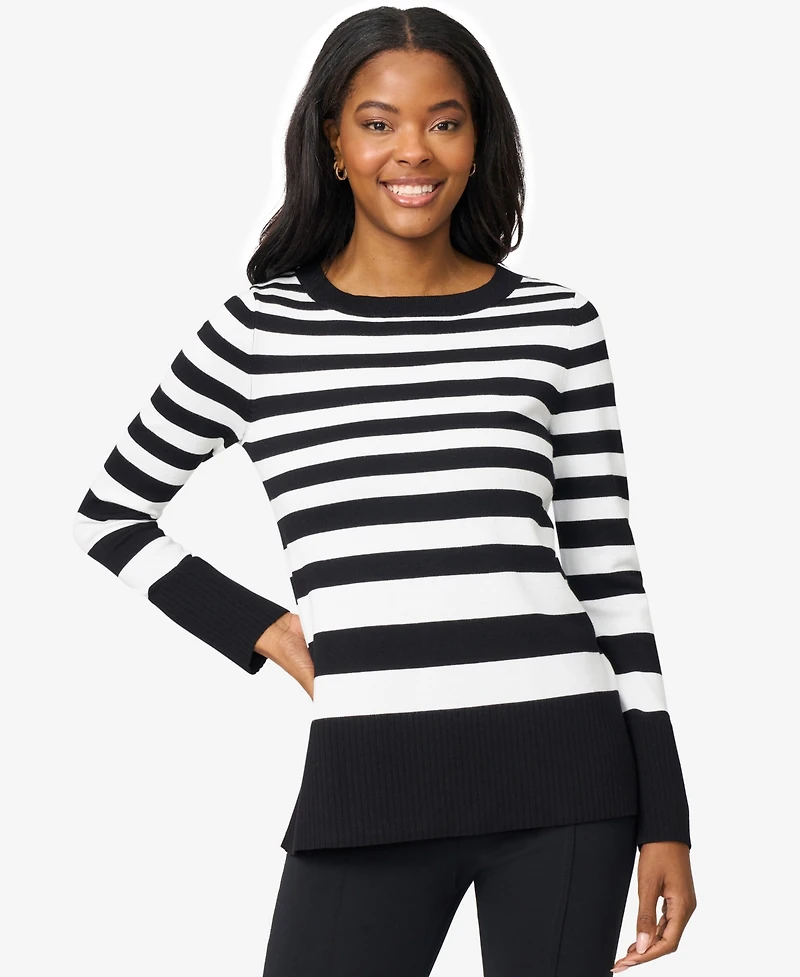 Melissa Paige Women's Striped Scoop Neck Tunic Sweater