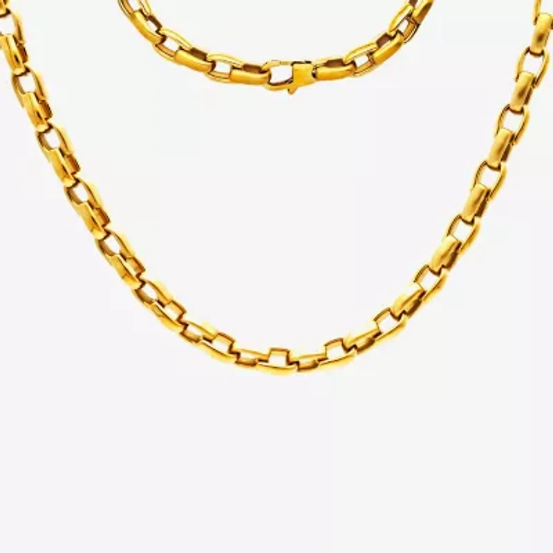 Mens 14K Gold Over Stainless Steel 24 Inch Link Chain Necklace