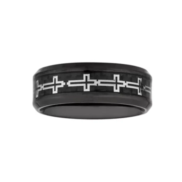 Mens Diamond-Accent Cross Stainless Steel 8mm Wedding Band