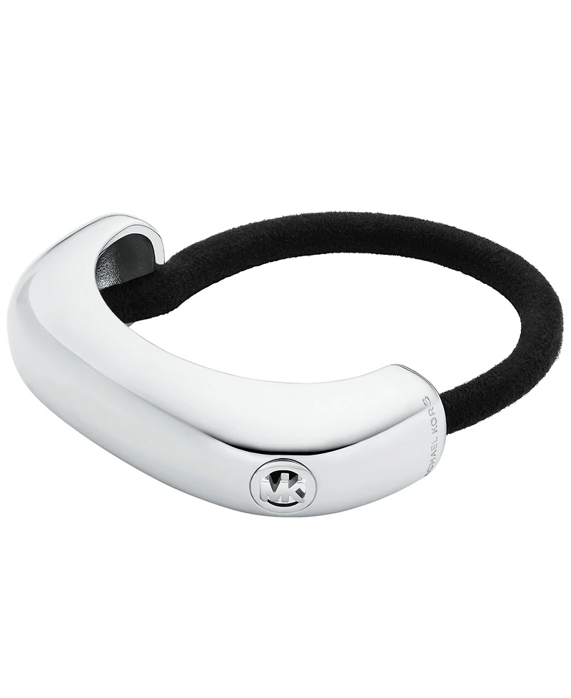 Elevate your everyday look with this Michael Kors hair accessory. Crafted in brass and finished in a sparkling gold-tone and silver-tone this sleek hair tie adds an elevated and modern look to your usual ponytail. Dress it up or down, this will be your new go to accessory.