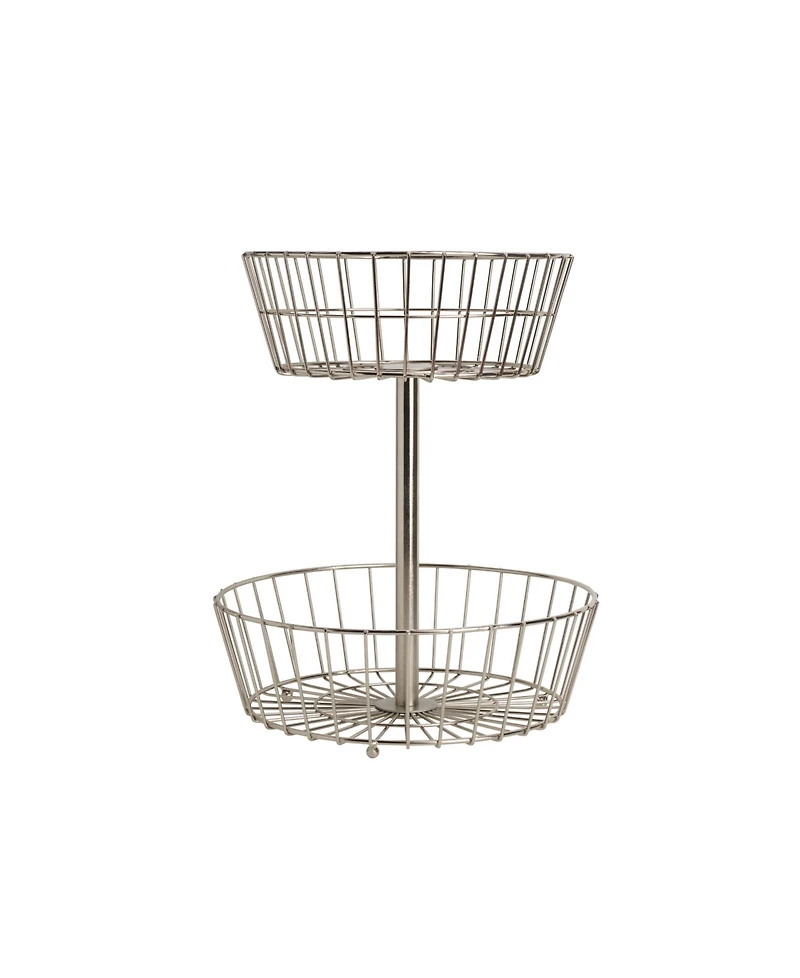 This Gourmet Basics Geneva 2-Tier Basket by Mikasa features a wire frame structure with a stunning finish. The space-saving design allows you to store more items in limited spaces. This basket is strong and durable.