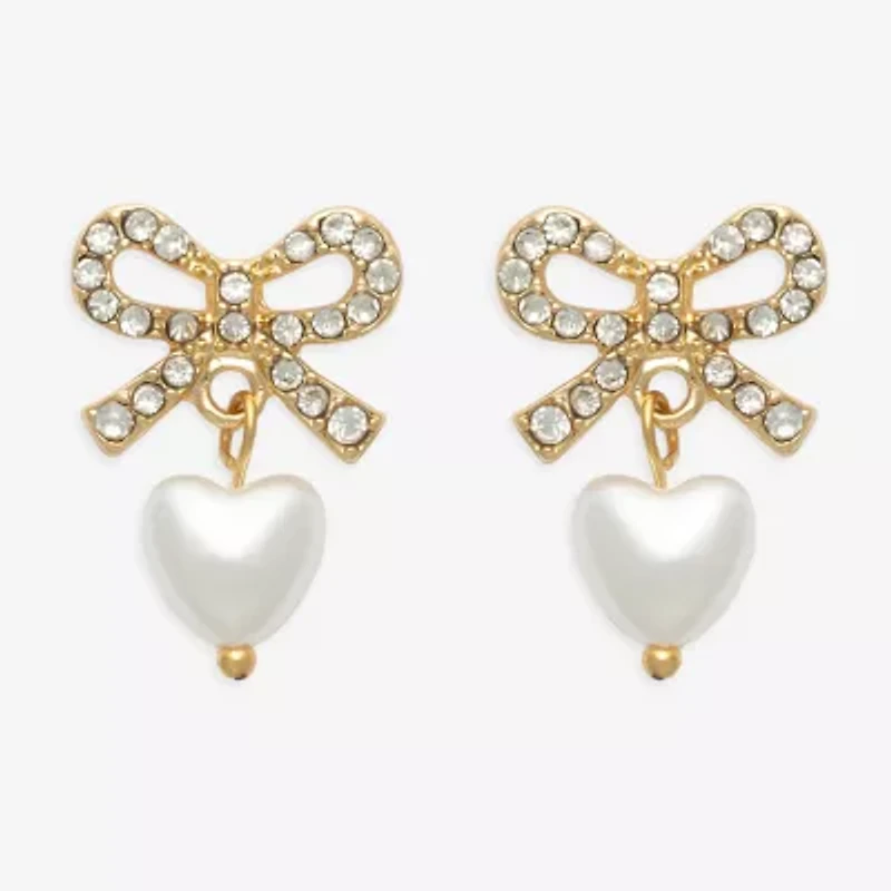 Mixit Womens Glass Simulated Pearl Bow Heart Drop Earrings