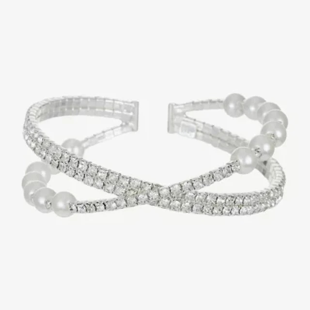 Monet Jewelry Timeless Silver Tone Womens Glass Simulated Pearl Cushion Stretch Bracelet