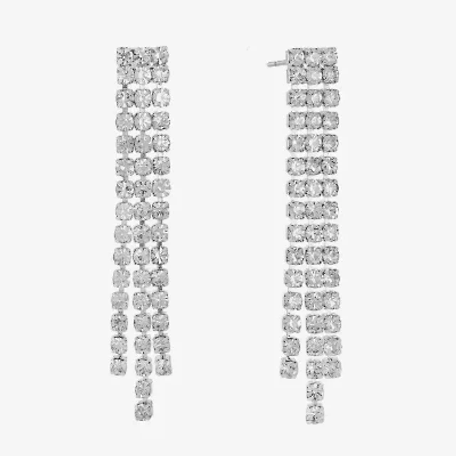 Monet Jewelry Timeless Silver Tone Linear Womens Glass Round Hypoallergenic Drop Earrings