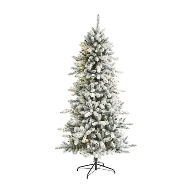 Nearly Natural Slim Flocked Faux 6 Foot Pre-Lit Fir Christmas Tree
