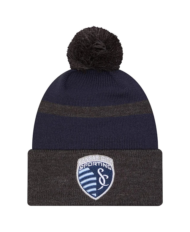 New Era Men's Blue Sporting Kansas City 2025 Kickoff Cuffed with Pom Knit Hat