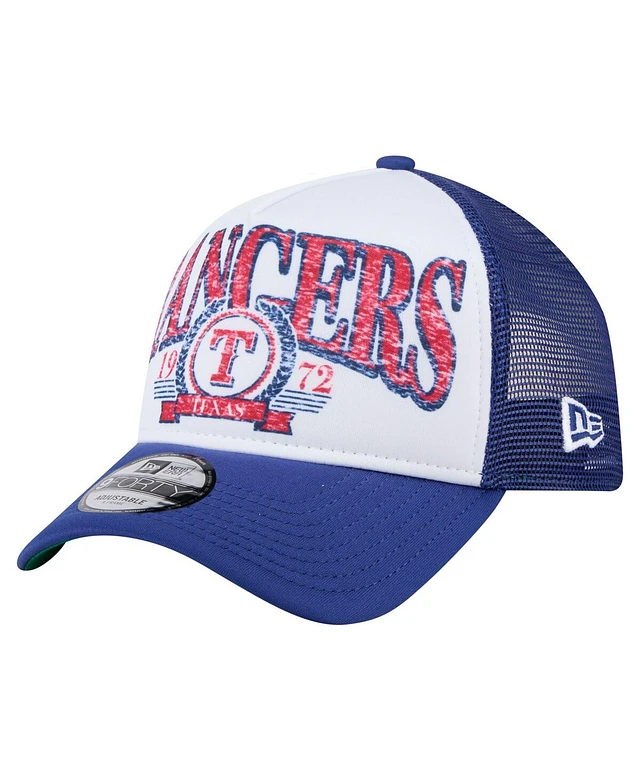 New Era Men's White/Royal Texas Rangers Trucker A-Frame 9FORTY Adjustable Hat
