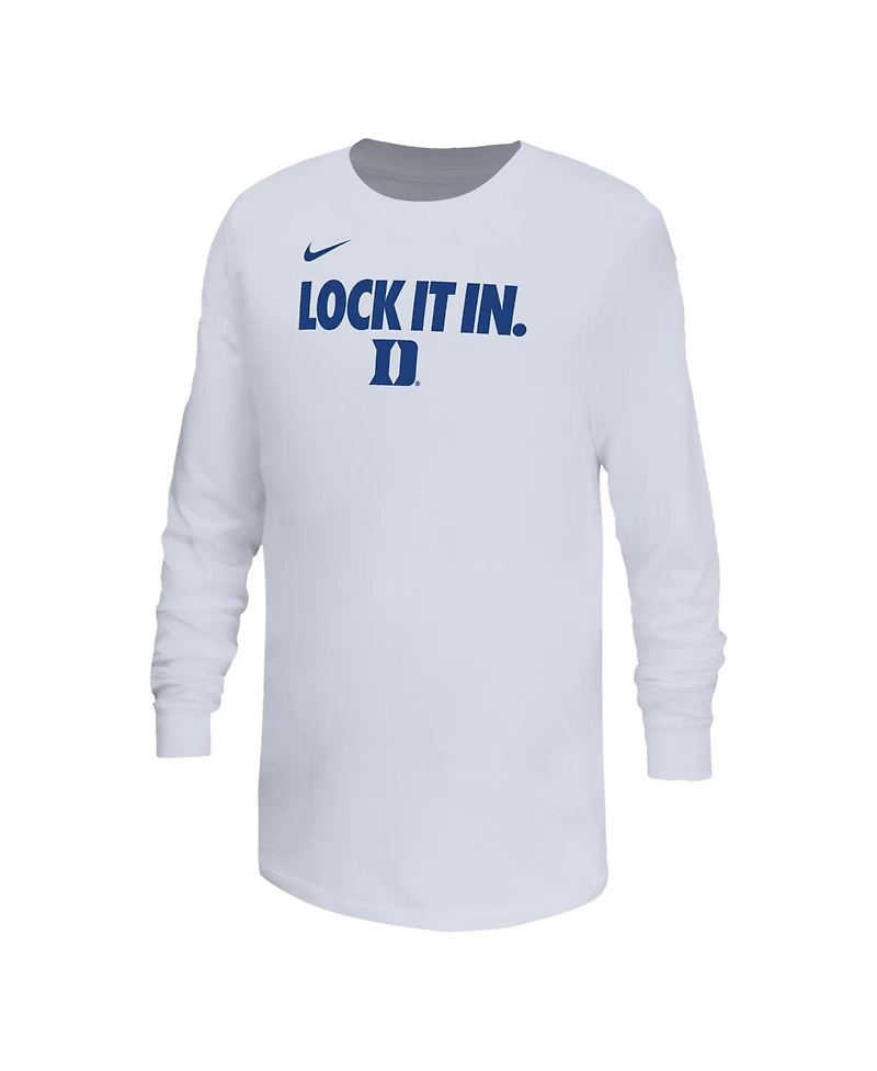 Nike Big Boys and Girls White Duke Blue Devils On-Court Bench Legend Dri-fit Long Sleeve T-Shirt