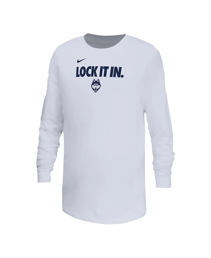 Nike Big Boys and Girls White UConn Huskies On-Court Bench Legend Dri-fit Long Sleeve T-Shirt