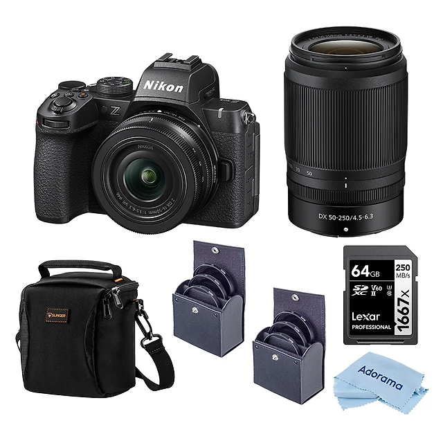 Nikon Z50II Mirrorless Camera with Nikkor Z Dx 16-50mm f/3.5-6.3 Vr & Z Dx 50-250mm f/4.5-6.3 Vr Lenses, Bundle with 64GB Memory Card, 46mm and 62mm F