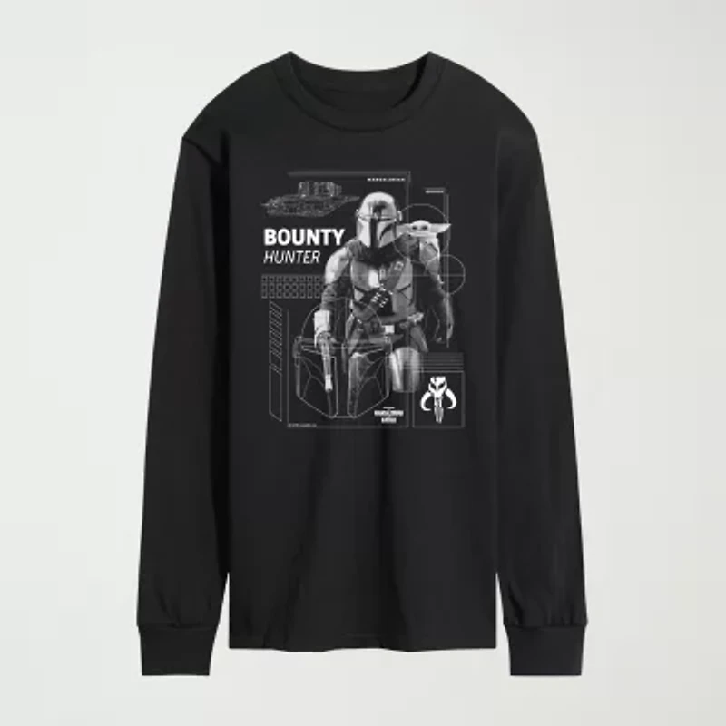 Novelty The Mandalorian And Grogu Bounty Hunter Mens Crew Neck Long Sleeve Regular Fit Baby Yoda Star Wars Graphic T-Shirt