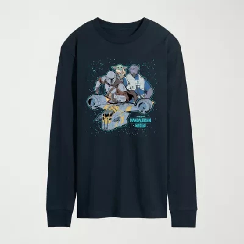 Novelty The Mandalorian And Grogu Collage Mens Crew Neck Long Sleeve Regular Fit Baby Yoda Star Wars Graphic T-Shirt